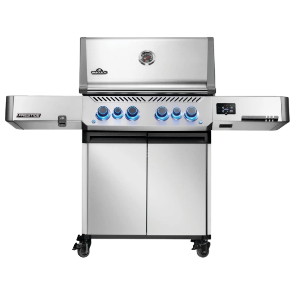 The Napoleon Phantom Prestige® 500 Connected RSIB Natural Gas Grill brings connected grilling to a premium matte black design. Wi‑Fi and Bluetooth® connectivity, an integrated LCD display, infrared side and rear burners, temperature probes, and cast stainless steel cooking grids deliver high-performance grilling with smart control.